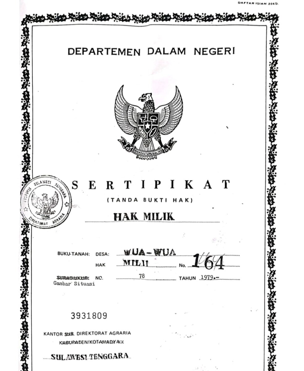 SULTRAWINN.COM, KENDARI – Sengketa tanah seluas 12.189 meter persegi di Kelurahan Wua-Wua (kini Kelurahan Kadia), Kota Kendari, berujung pada kemenangan ahli waris almarhum Drs. H. Baso Suamir di Pengadilan Tata Usaha Negara (PTUN) Kendari.
